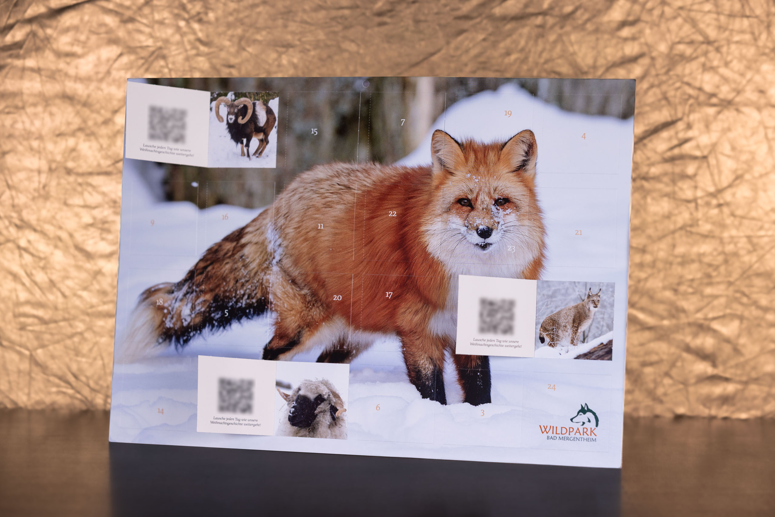 Lausche der Wildpark-Weihnachtsgeschichte und bringe jeden Tag, -zusammen mit dem jungen Fuchs Pippo, das Licht der Weihnacht zu den Tieren des Wildparks! Auf den Türinnenseiten findest Du für jeden Tag den Weg zum nächsten Kapitel unserer Hör-Geschichte (QR-Code).